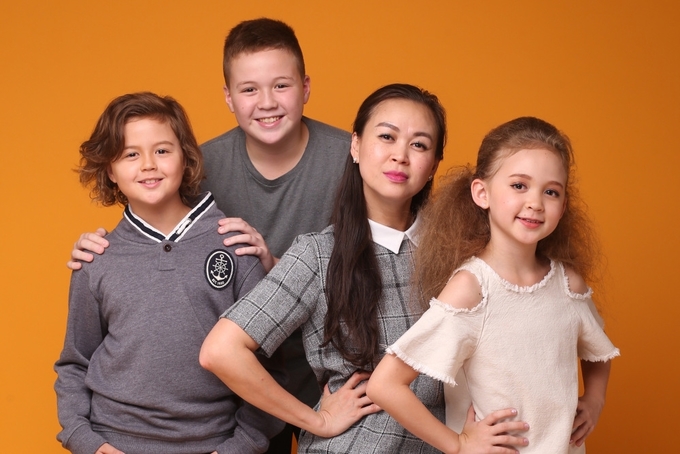 Từ khi kết hôn cùng doanh nhân người Australia, Ngọc Nga rút khỏi showbiz để chăm lo gia đình nhỏ. Cô vừa cùng 3 con – William (giữa), Edward (phải) và Elizabeth – thực hiện bộ ảnh gia đình.