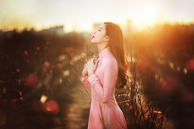 Mới đây, Huyền Trang cùng nhiếp ảnh Phan Thanh Tâm thực hiện bộ ảnh ở vườn đào Nhật Tân gửi tới những người hâm mộ.