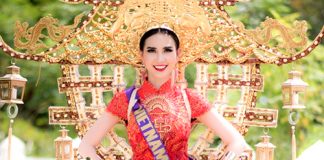 Phan Thị Mơ đeo mô hình chùa Một Cột thi trang...
