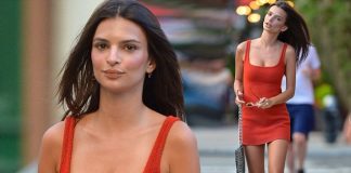 Emily Ratajkowski gợi cảm với váy đỏ rực