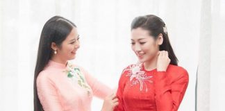 Hoa hậu Ngọc Hân tự may áo dài cưới tặng Á...