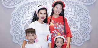 Hà Hương cùng hai con trình diễn áo dài