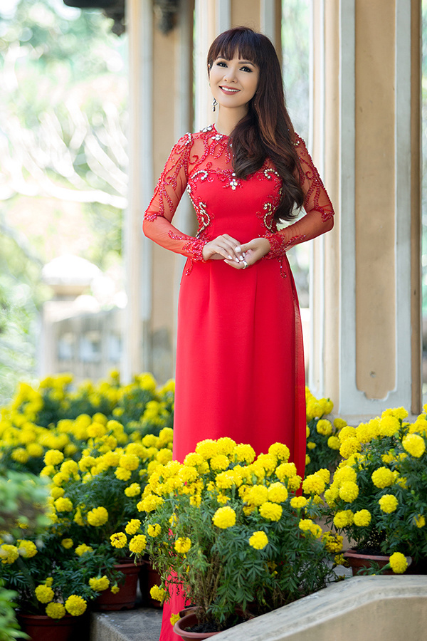 Hoa hậu Áo dài Việt Nam 1989 khoe vẻ đẹp mặn mà khi diện áo dài màu sắc.