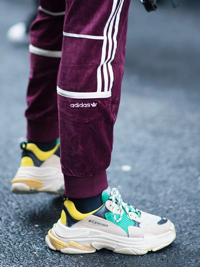 | Xu hướng diện giày “Dad sneaker” với phom dáng cổ điển, cùng phần đế thô đang trở thành lựa chọn của dàn tín đồ thế giới. Mẫu phụ kiện của Balenciaga cùng tên gọi “Triple S” xuất hiện nhiều trong các bức ảnh street style. Với phần đế cao được thiết kế theo dạng uốn lượn đem đến sự thoải mái, nhằm tăng thêm chiều cao đáng kể cho người dùng. |
