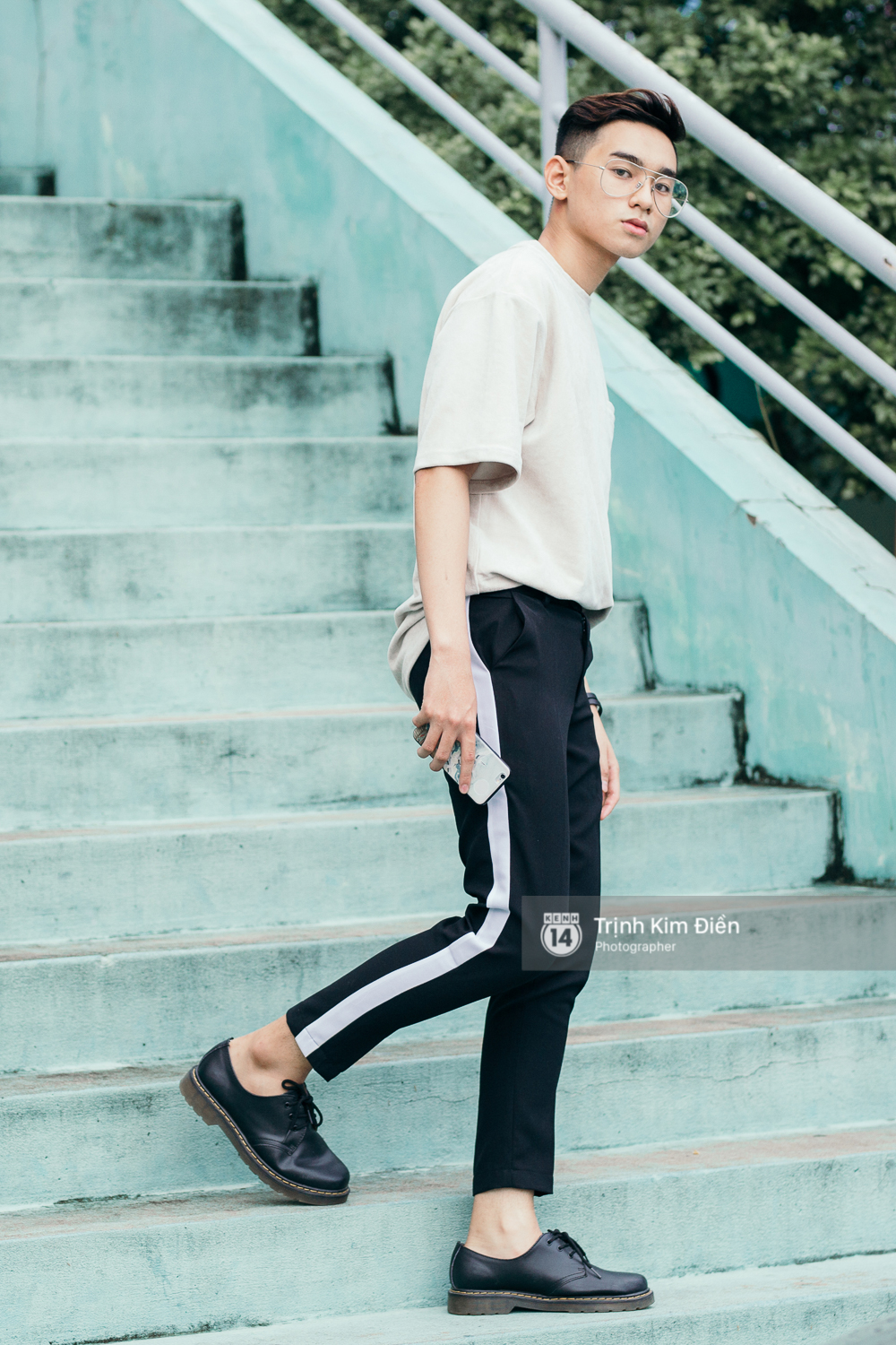 Dũng Tấn với set đồ đơn giản mà bắt mắt đến không ngờ. Có vẻ như quần tây kẻ sọc vẫn duy trì được sức nóng trong cộng đồng các tín đồ thời trang Việt.