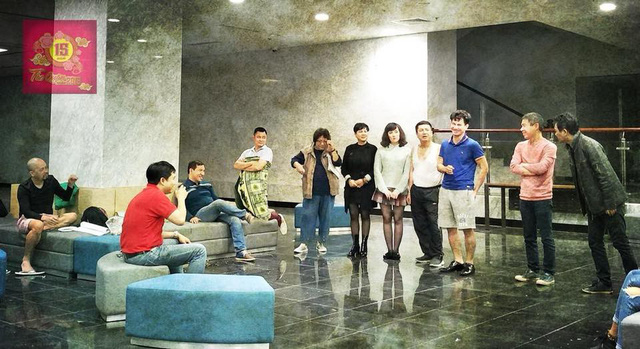 Mệt mỏi và căng thẳng nhưng các nghệ sĩ vẫn vui “tới bến” trong những phút giải lao giữa giờ tập.