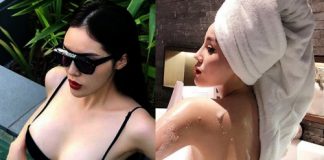 Phạm Hương mặc bikini ‘sáng rực’ cả bể bơi
