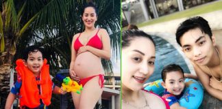 Khánh Thi diện bikini, khoe bụng bầu gần 8 tháng bên...