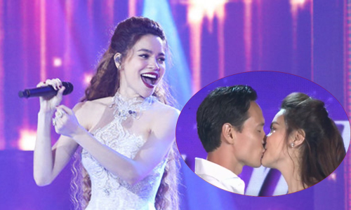 Kim Lý – Hồ Ngọc Hà hôn nhau trên sân khấu