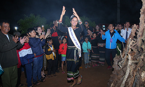 H’Hen Niê mang dép lê múa hát bên lửa trại cùng bà con