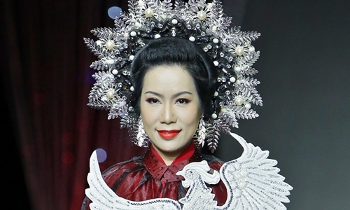 Trịnh Kim Chi trình diễn áo dài đính 2.000 viên đá