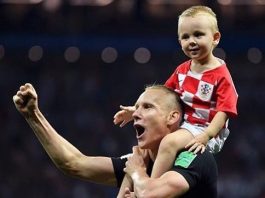 Khoảnh khắc ăn mừng dễ thương của hậu vệ tuyển Croatia và con trai