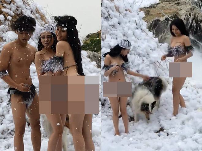 Bộ ảnh hai cô gái cùng một mẫu nam ăn mặc sexy, tạo dáng phản cảm bất chấp thời tiết lạnh giá hiện đang là tâm điểm chú ý của dư luận. Xuất hiện trên diễn đàn mạng xã hội không lâu, clip hậu trường chụp ảnh của các người mẫu đã tạo ra những cơn phẫn nộ.
