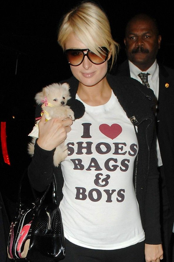 | Slogan tee: Paris Hilton là một trong những cô gái thể hiện thông điệp của bản thân thông qua những mẫu áo thun in khẩu hiệu độc đáo. Cô mở đầu cho trào lưu thời trang này. Chia sẻ với báo chí, người đẹp cho rằng những mẫu slogan tee chính là cách tốt nhất để công khai suy nghĩ, quan điểm cùng cảm xúc của người mặc. |
