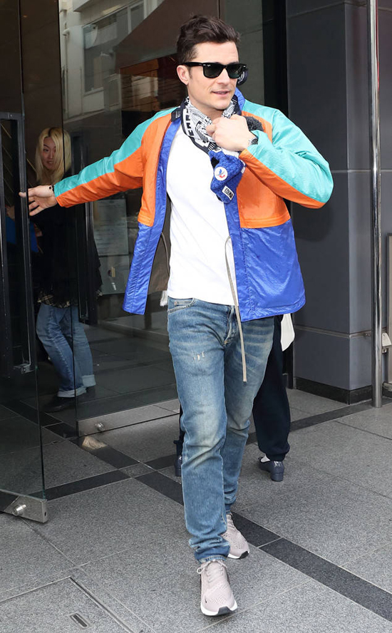 Các fan xứ hoa anh đào phát hiện Orlando Bloom đi dạo trên đường phố Tokyo hôm 27/3. Vào buổi tối, nam diễn viên đã tới xem bạn gái – ca sĩ Katy Perry biểu diễn tại Saitama Super Arena. |