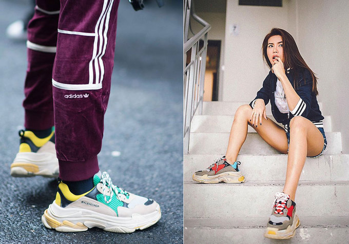 Thay thế cho mẫu giày tất (sock trainers) ôm sát chân của năm ngoái, năm nay kiểu giày với phần đế uốn lượn, cồng kềnh (chunky sneakers) lại được lòng hơn cả. Dẫn đầu xu hướng phải kể đến mẫu Triple S của Balenciaga với nhiều phối màu bắt mắt, có giá bán khoảng 18 triệu đồng. Tại Việt Nam, các tín đồ sneaker như Minh Tú, Kelbin Lei… đều đã cập nhật thiết kế này vào BST của mình.