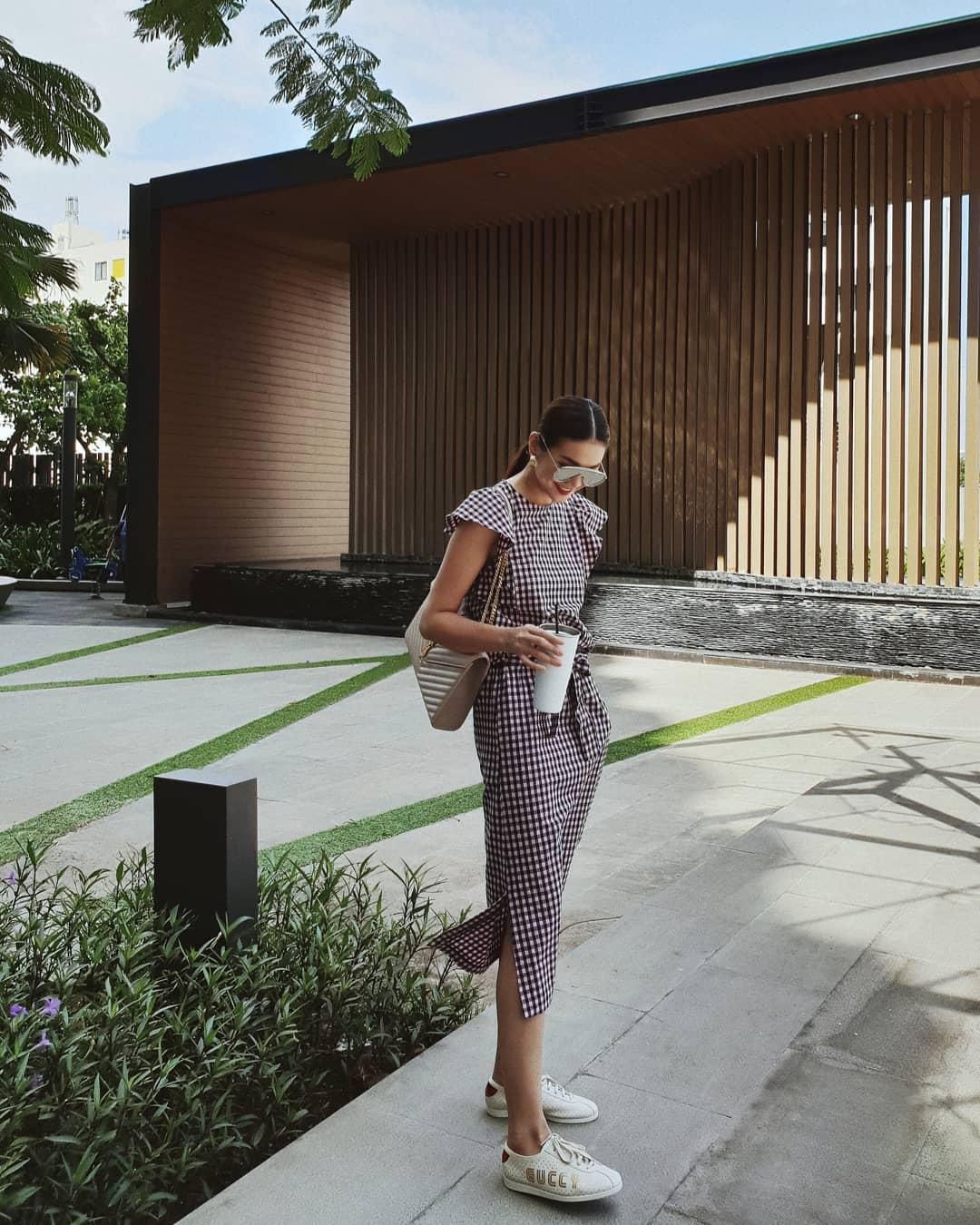 Thanh Hằng cá tính với trang phục kẻ xuống phố ngày cuối tuần