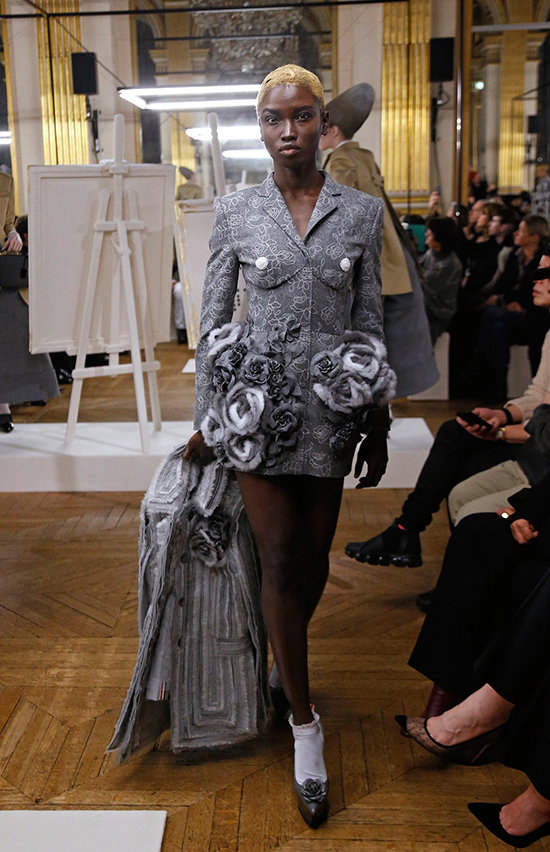 Với 50 sắc thái của màu xám, Thom Browne đã tạo nên một bộ sưu tập lôi cuốn về hình khối cũng như kỹ thuật dựng phom, cắt và đính kết.